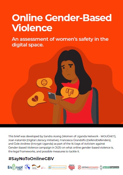 This brief was developed by Sandra Aceng (Women of Uganda Network - WOUGNET), Joan Katambi (Digital Literacy Initiative), Francesca Grandolfo (DefendDefenders), and Gole Andrew (Encrypt Uganda) as part of the 16 Days of Activism against Gender-Based Violence campaign in 2020 on what online gender-based violence is, the legal frameworks, and possible measures to tackle it.